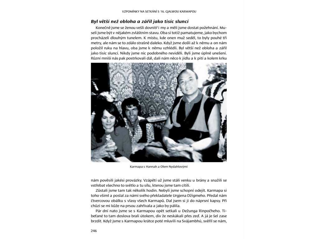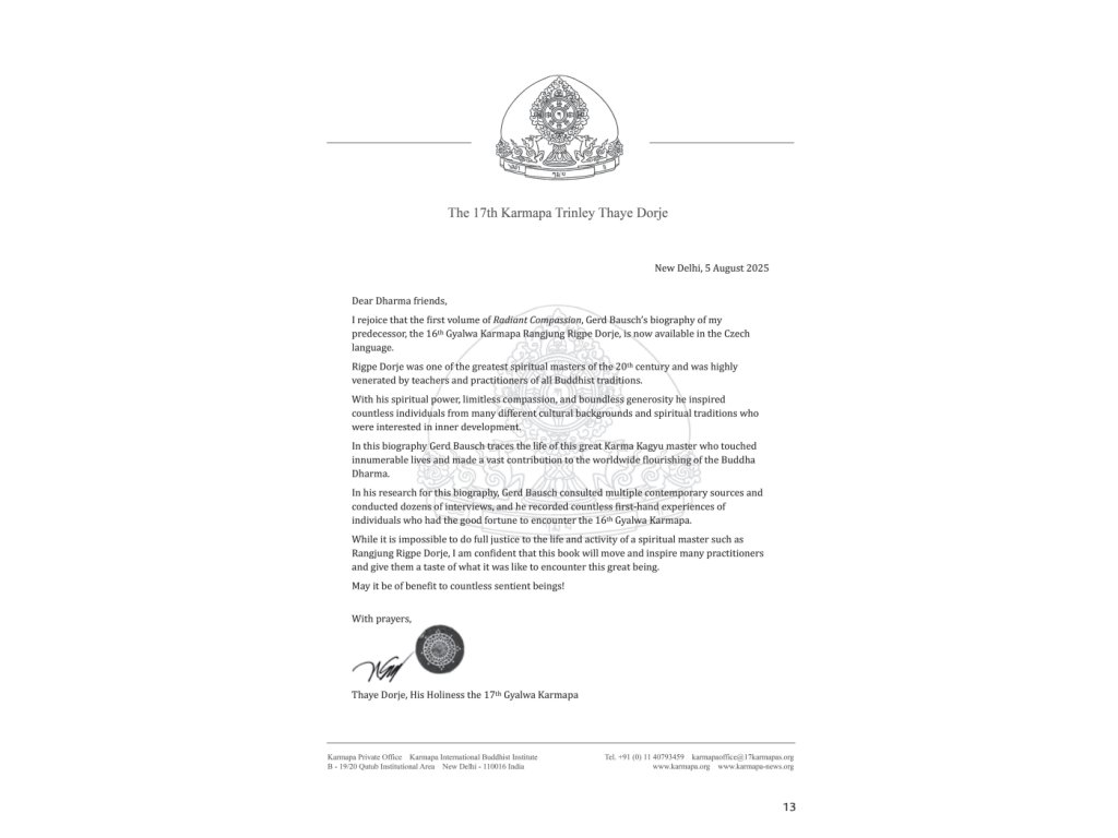 Zářivý soucit je inspirací pro každého, kdo v dnešním světě hledá smysl. Díky osobním vzpomínkám, vzácným rozhovorům a dojemným příběhům kniha odhaluje hlubokou schopnost Karmapy dotýkat se životů napříč kulturami a náboženstvími – od tibetských mnichů po západní studenty, od hinduistických mudrců až po papeže Pavla VI. Jeho smích, laskavost a nepolevující úsilí o uchování vzácného učení září z každé stránky.